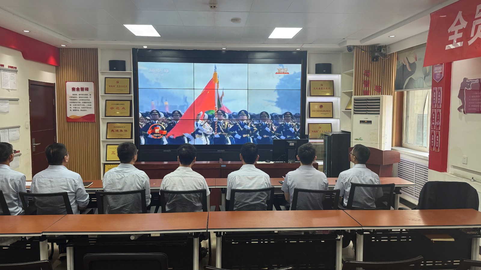 歷史燭照未來,精神永續(xù)傳承。為深切緬懷在抗日戰(zhàn)爭中英勇獻(xiàn)身的革命先烈,大力弘揚(yáng)偉大的抗戰(zhàn)精神,引導(dǎo)全體黨員、職工銘記光輝歷史、堅(jiān)定理想信念、強(qiáng)化責(zé)任擔(dān)當(dāng),9月3日,機(jī)運(yùn)工區(qū)黨支部組織開展了“銘記歷史偉業(yè),傳承紅色基因”主題黨日活動,組織全體黨員集中觀看紀(jì)念中國人民抗日戰(zhàn)爭暨世界反法西斯戰(zhàn)爭勝利80周年閱兵儀式現(xiàn)場直播。上午九時(shí)整,機(jī)運(yùn)工區(qū)全體黨懷著無比崇敬與激動的心情,目光齊聚屏幕。伴隨著激昂雄壯的國歌奏響,鮮艷的五星紅旗在天安門廣場冉冉升起,大家心潮澎湃,肅然起敬。隨后,規(guī)模宏大、氣勢磅礴的閱兵式正式開始。屏幕上,一個個整齊劃一、威武雄壯的徒步方隊(duì),邁著鏗鏘有力、撼人心魄的步伐走過檢閱臺,堅(jiān)毅的眼神、挺拔的身姿,充分展現(xiàn)了新時(shí)代軍人聽黨指揮的忠誠品格和能打勝仗的過硬本領(lǐng);一列列代表著國家科技實(shí)力與國防現(xiàn)代化建設(shè)最新成果的裝備方隊(duì),鐵流滾滾,氣勢如虹,尖端武器依次亮相,彰顯了捍衛(wèi)國家主權(quán)、安全、發(fā)展利益的堅(jiān)定決心與強(qiáng)大能力;雄鷹呼嘯,劃破長空,戰(zhàn)機(jī)編隊(duì)以精準(zhǔn)的隊(duì)形和磅礴的氣勢接受檢閱,描繪出壯美的藍(lán)天畫卷,宣示著捍衛(wèi)國家領(lǐng)空安全的鋼鐵意志。整個閱兵過程,秩序井然、威武雄壯、氣勢恢宏,生動詮釋了人民軍隊(duì)“聽黨指揮、能打勝仗、作風(fēng)優(yōu)良”的強(qiáng)軍目標(biāo),全方位展示了在黨的堅(jiān)強(qiáng)領(lǐng)導(dǎo)下,國家日益強(qiáng)大的綜合國力和維護(hù)世界和平的堅(jiān)定信念。屏幕前,黨員們?nèi)褙炞ⅲ瑹o不被這震撼人心的場面所感染,民族自豪感與榮譽(yù)感油然而生,現(xiàn)場不時(shí)響起由衷的贊嘆和熱烈的掌聲。通過本次“銘記歷史偉業(yè),傳承紅色基因”主題黨日活動,機(jī)運(yùn)工區(qū)黨支部全體黨員經(jīng)歷了一次深刻的精神淬煉與思想升華。大家的歷史使命感、民族自豪感、崗位責(zé)任感得到顯著增強(qiáng),紛紛表示以更加飽滿昂揚(yáng)的精神狀態(tài)、更加求真務(wù)實(shí)的工作作風(fēng)、更加開拓創(chuàng)新的進(jìn)取意識,恪盡職守,銳意進(jìn)取,全力以赴保障原煤運(yùn)輸安全高效,為工區(qū)及公司的持續(xù)高質(zhì)量發(fā)展貢獻(xiàn)全部力量!